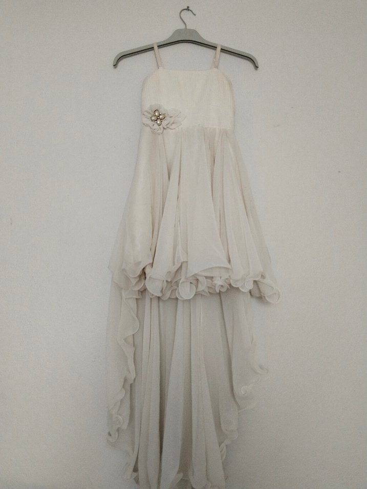 beyaz önü kısa arkası uzun abiye, fırfır detaylarıyla çok şık duruyor, asklılarını biz kısalttık içinde payı var açabilirsiniz. fiyatta yardımcı olurum