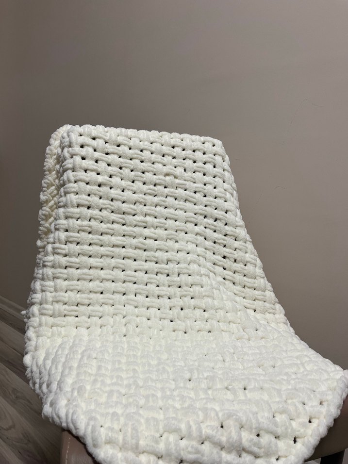 Yumuşak ve rahat dokulu beyaz örgü çocuk battaniyesi, sade ve desensiz tasarıma sahiptir. Tek kişilik, çift kişilik de yapılmaktadır.