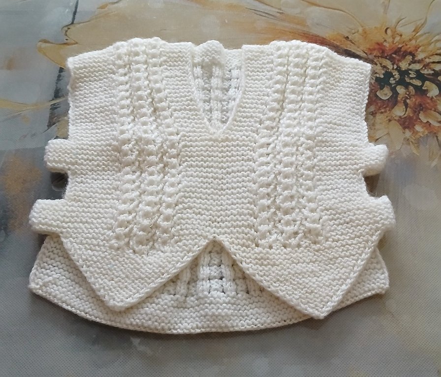 Beyaz renkli, örgü yelek 1x2 kere gıyildi