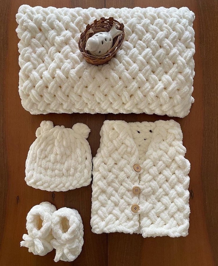 Beyaz Örgü Bebek Takımı