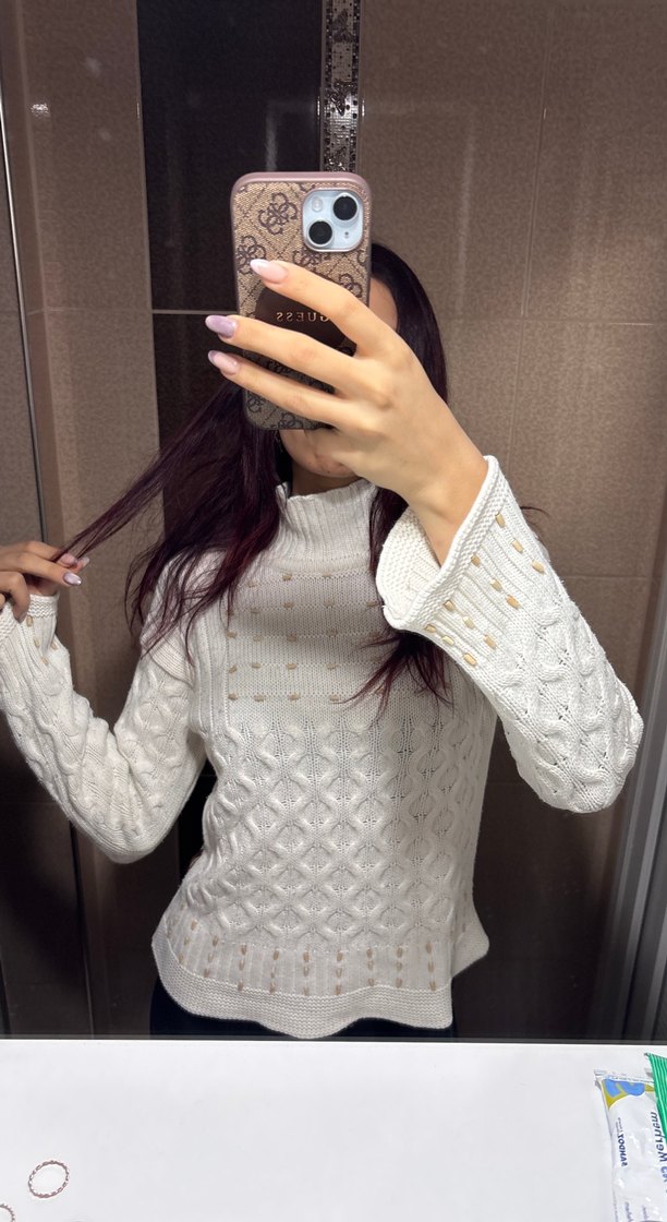 Bu beyaz örgü kadın kazak, boğazlı ve uzun kollu olup, pastel tonlarında yumuşak triko kumaştan yapılmıştır. Günlük kullanıma uygun, rahat ve sade bir tasarıma sahiptir. ❄️