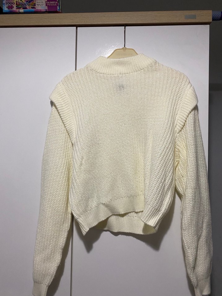 Beyaz örgü, boğazlı, uzun kollu, normal boy, fitted kesim kadın kazak. Rahat ve sade tasarımıyla günlük kullanıma uygundur.