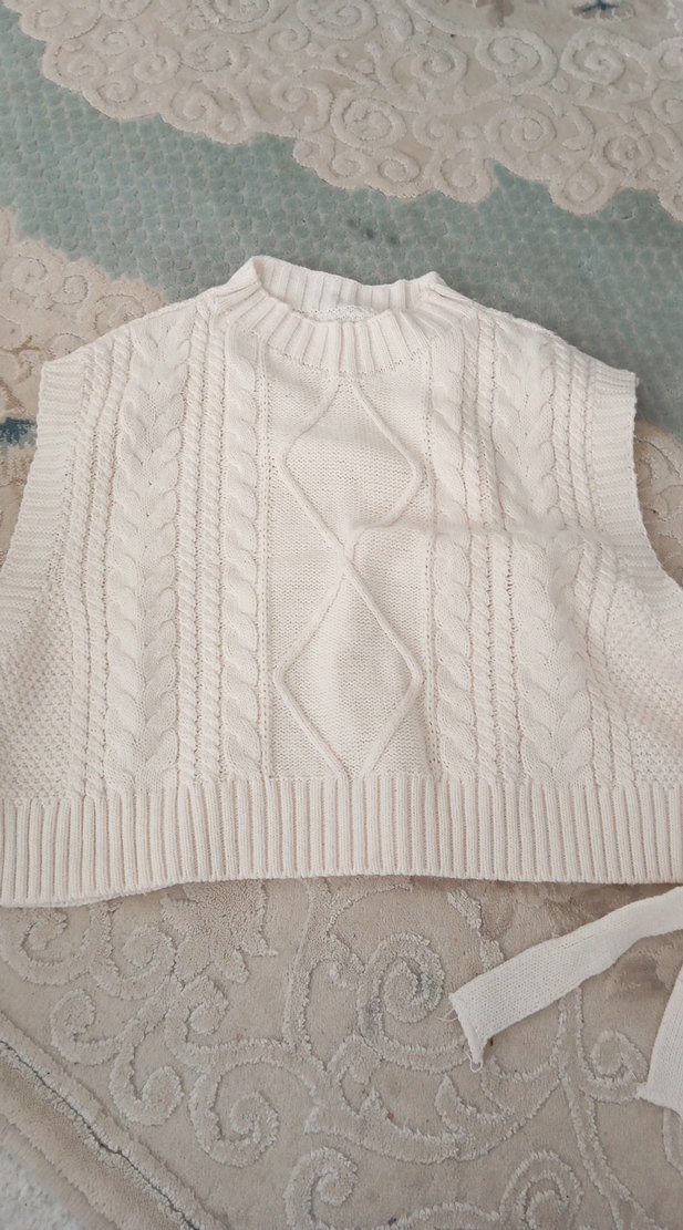 Beyaz Örgü Boğazlı Kolsuz Kadın Süveter