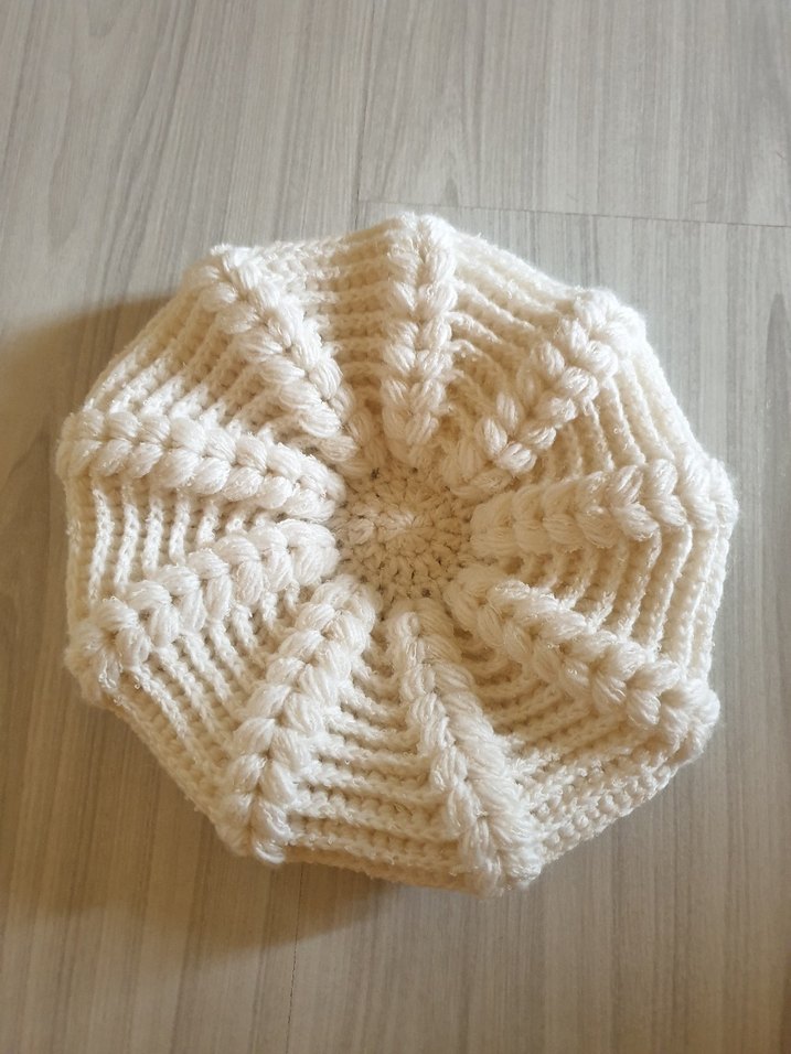 Bu beyaz örgü bere, dokulu deseniyle rahat ve bohem stil sunar, kıyafetinize retro bir dokunuş katar.
