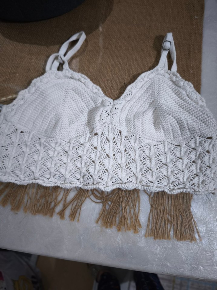 Beyaz Örgü Bohem Büstiyer