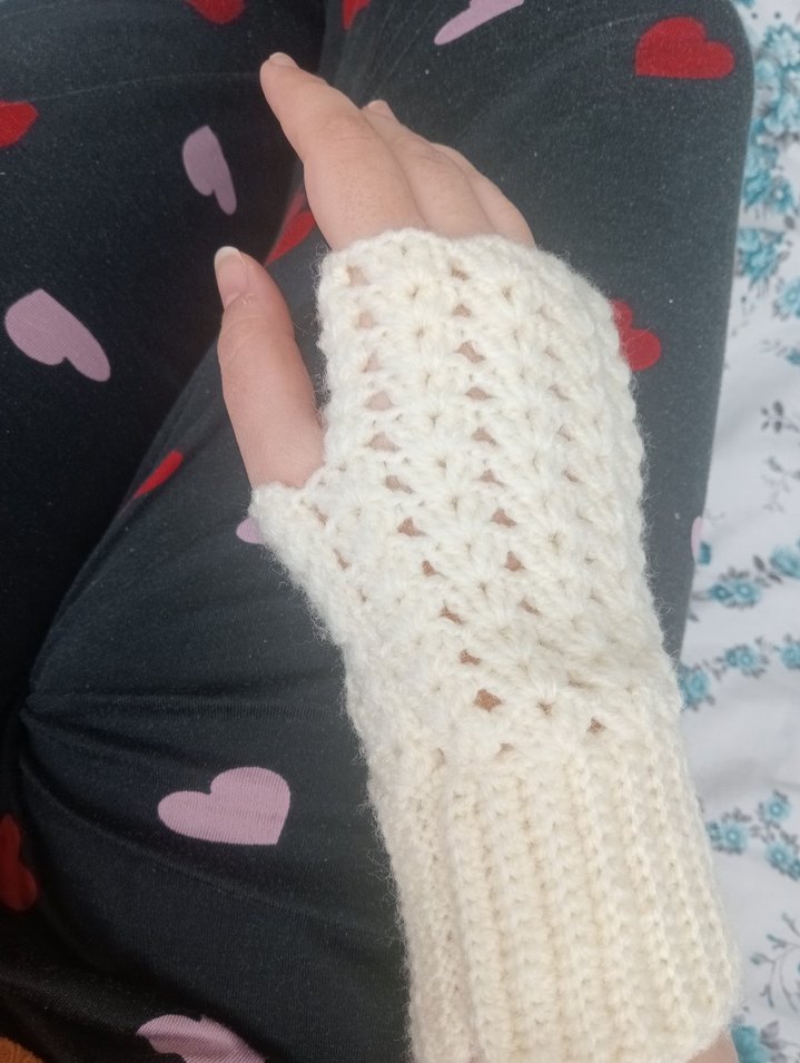 Örgü beyaz kadın eldiveni, açık parmak uçlu tasarımı ve bohem tarzıyla rahat ve retro bir görünüm sunar. Hafif ve konforludur.