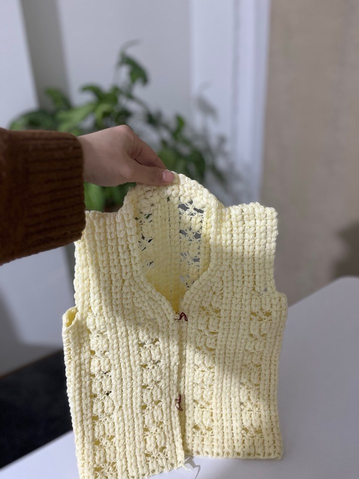 Beyaz Örgü Bohem Kolsuz Bebek Süveter