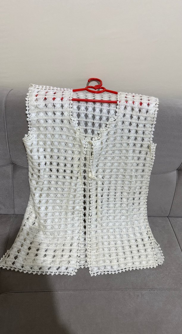 Beyaz Örgü Bohem Yelek
