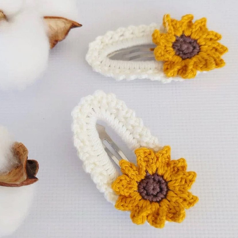 Beyaz Örgü Çiçekli Çocuk Toka ikili set