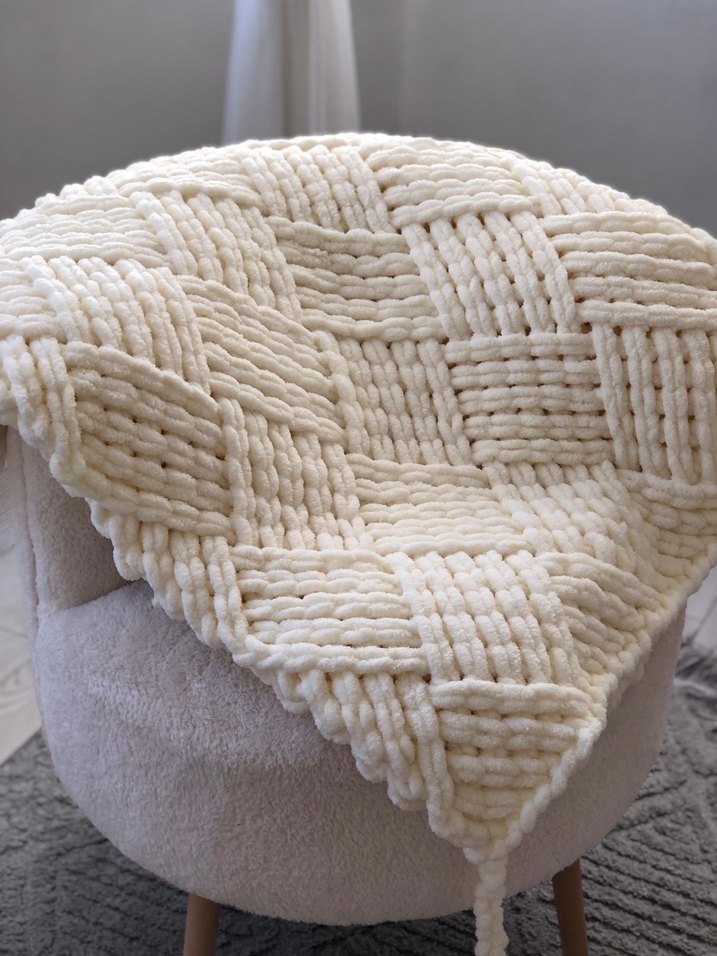 Yumuşak, dokulu örgü deseniyle beyaz çocuk battaniyesi. Kalın ve rahat örgü yapısıyla sıcaklık sağlar. Çocuklar için uygundur.