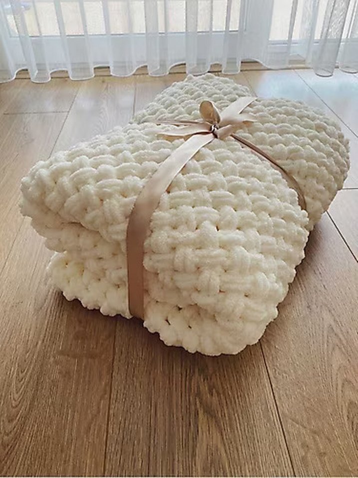 Pastel beyaz yumuşak örgü çocuk battaniyesi, kurdele ile bağlanmış, rahat anlar için ideal. sipariş ile istediğiniz model ve istediğiniz ürün yapılır