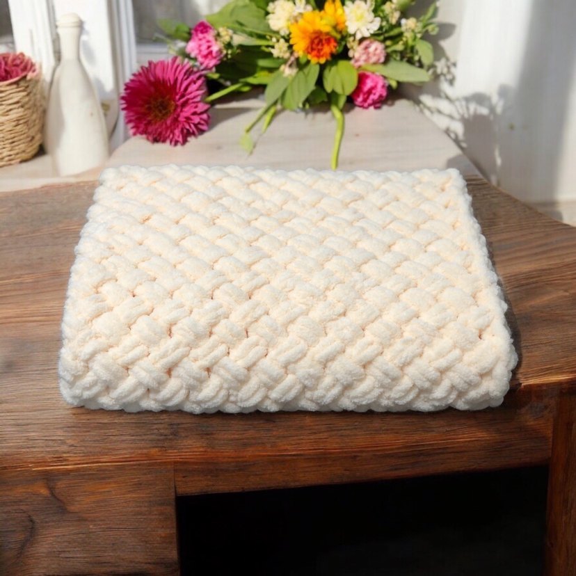 Yumuşak örgü dokusuyla beyaz renkte, desensiz çocuk battaniyesi, sıcaklık ve konfor sağlar.
