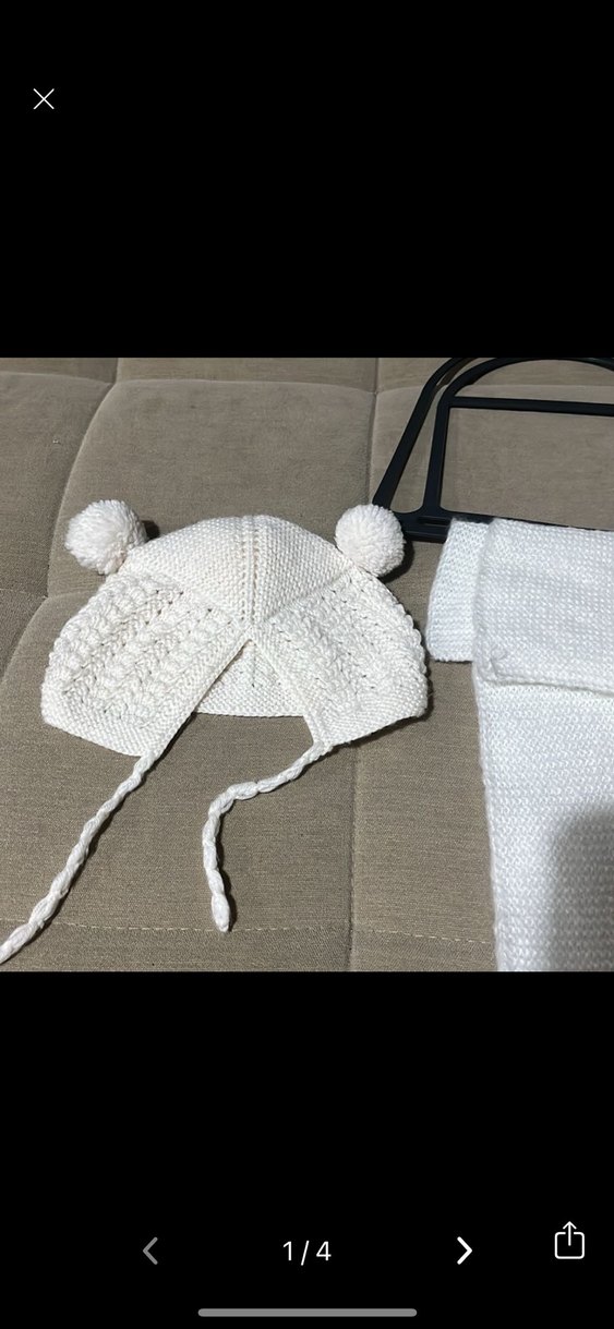 Beyaz Örgü Çocuk Bere ve Atkı Seti
