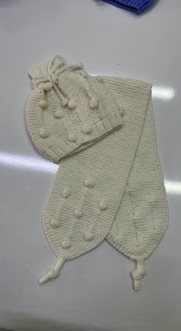 Beyaz Örgü Çocuk Bere ve Atkı Seti