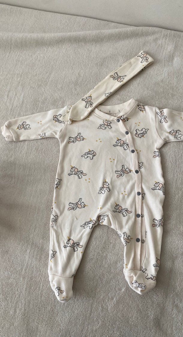 Pastel renklerde baskılı, beyaz örgü bebek kız tulumu. Önden çıtçıtlı, yumuşak ve rahat kumaşlıdır.