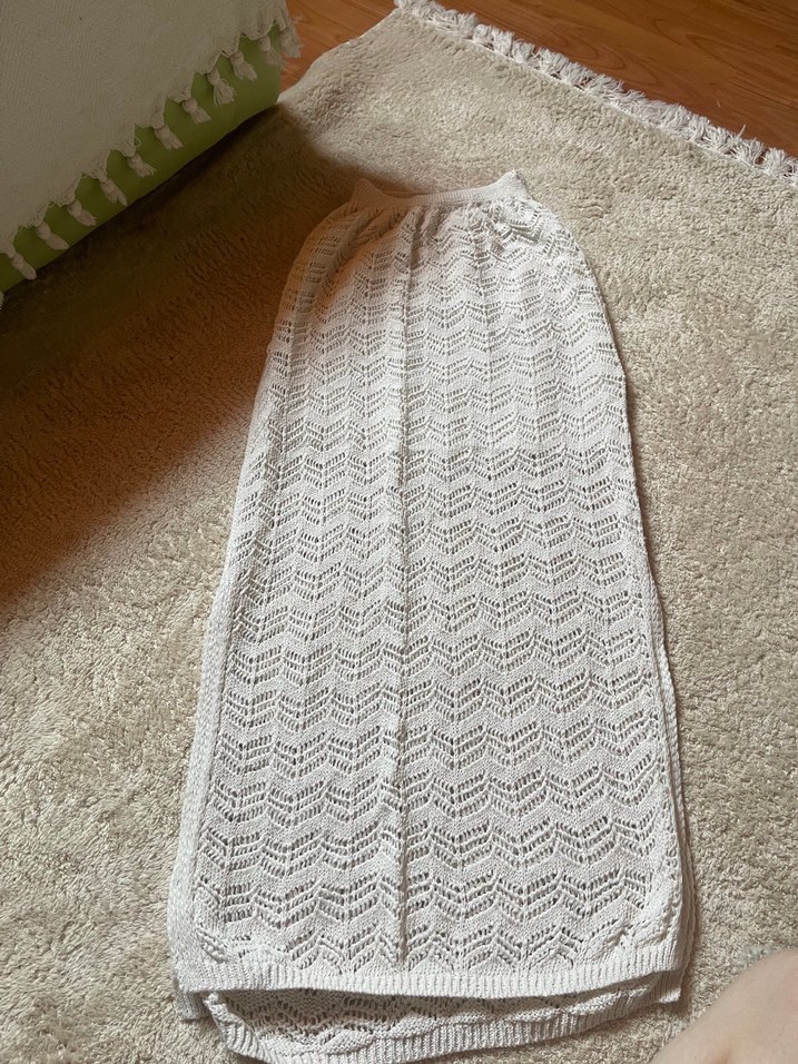 Yumuşak beyaz örgü, hafif zikzak desenli pareo , her ortama sıcaklık ve doku katar. ️