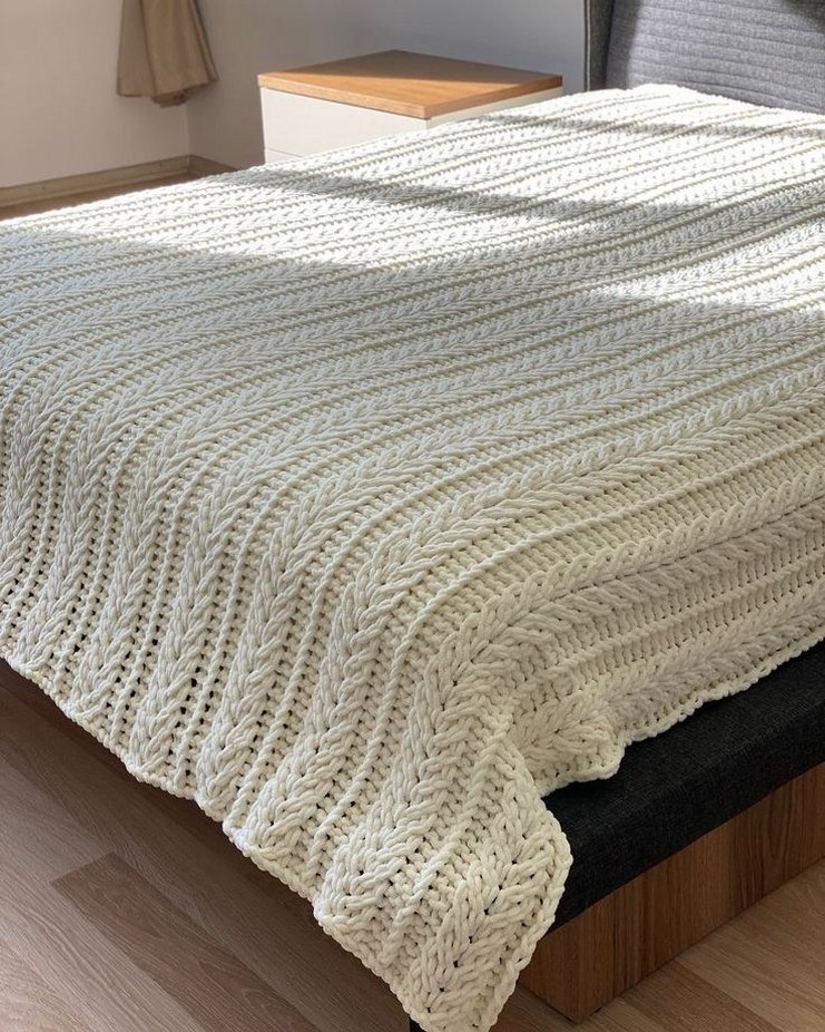 Gri tonlarında beyaz, örgü ve desensiz yumuşak bir battaniye, yatağa sıcaklık ve konfor katar. ️ sipariş aliyorum fiyat sorunuz