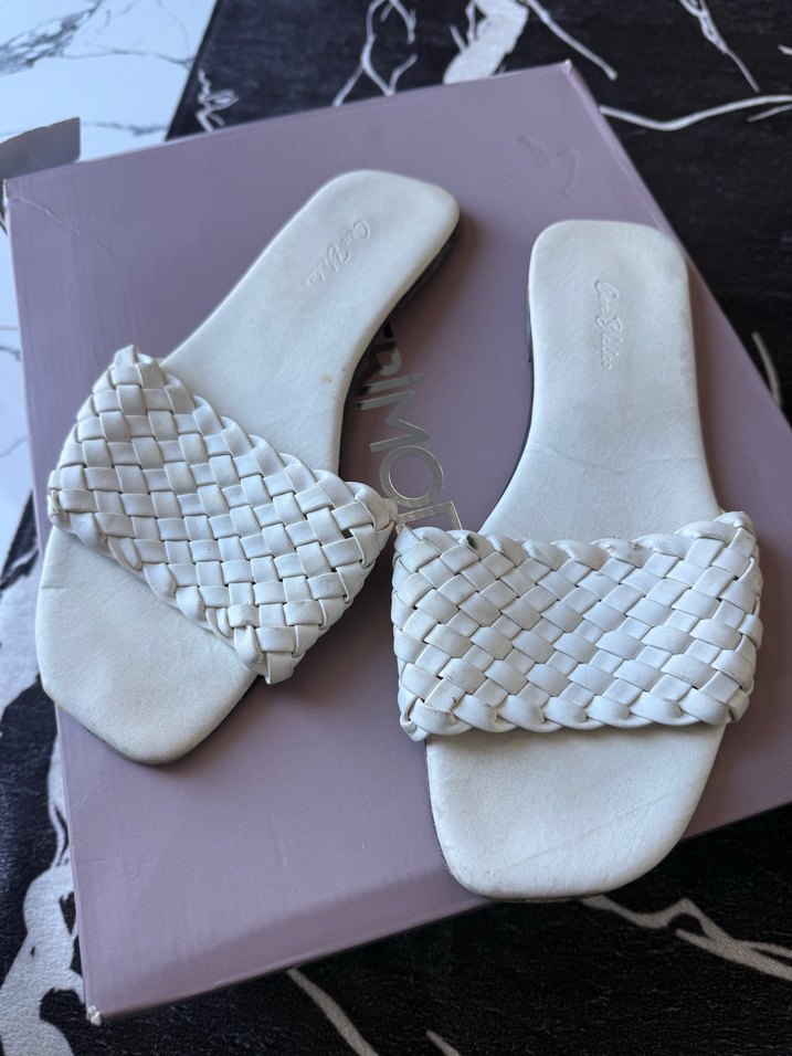 Beyaz Örgü Detaylı Kadın Terlik