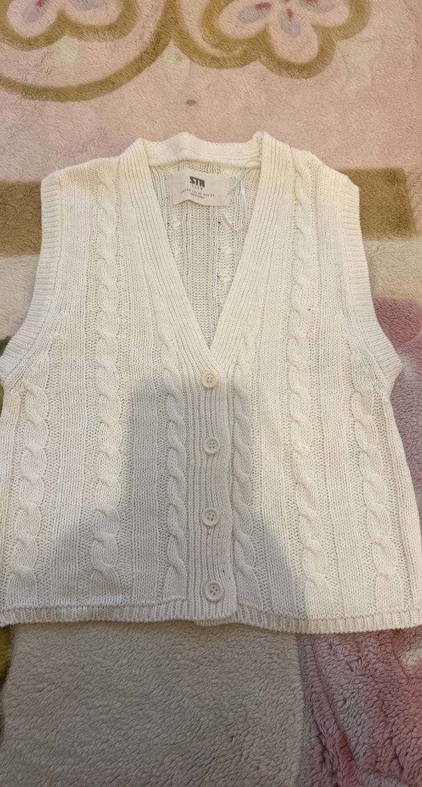 Beyaz renkte, düğmeli ve V yaka kadın örgü süveter. Yumuşak dokusu ve rahat kesimi günlük kullanıma uygundur.