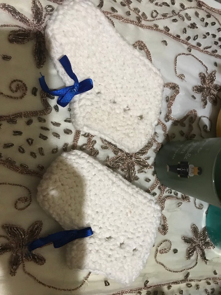 Beyaz Örgü Erkek Bebek Patik