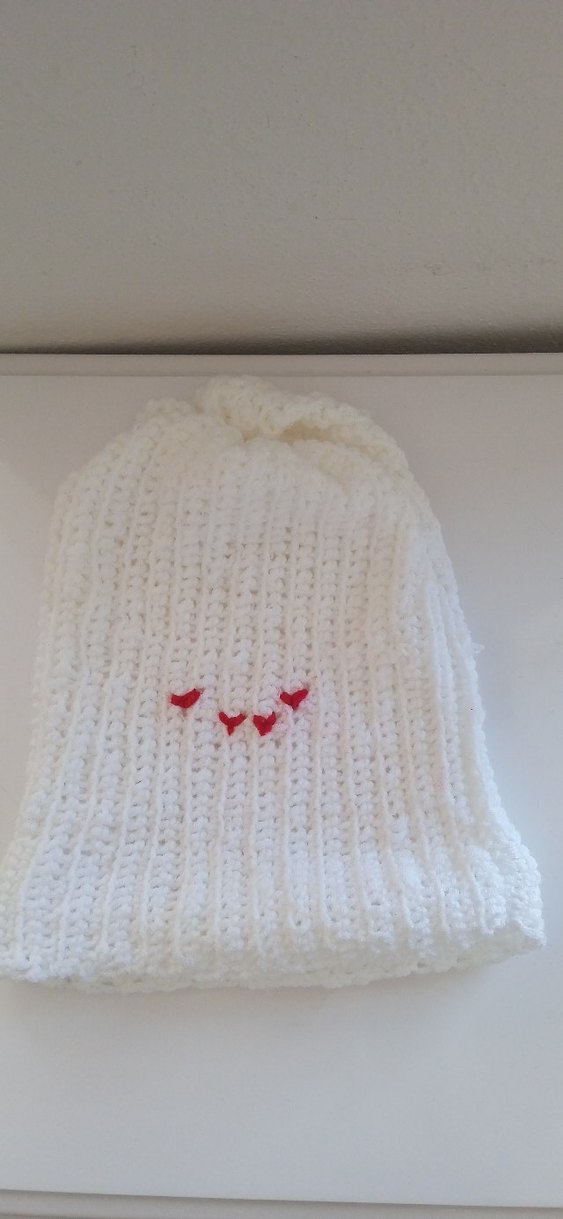 Yumuşak dokuda beyaz örme kadın bere, küçük kırmızı kalp detaylarıyla sade ve rahat bir tarz sunar. ❄️Her şey fotoğraflarda mevcuttur.