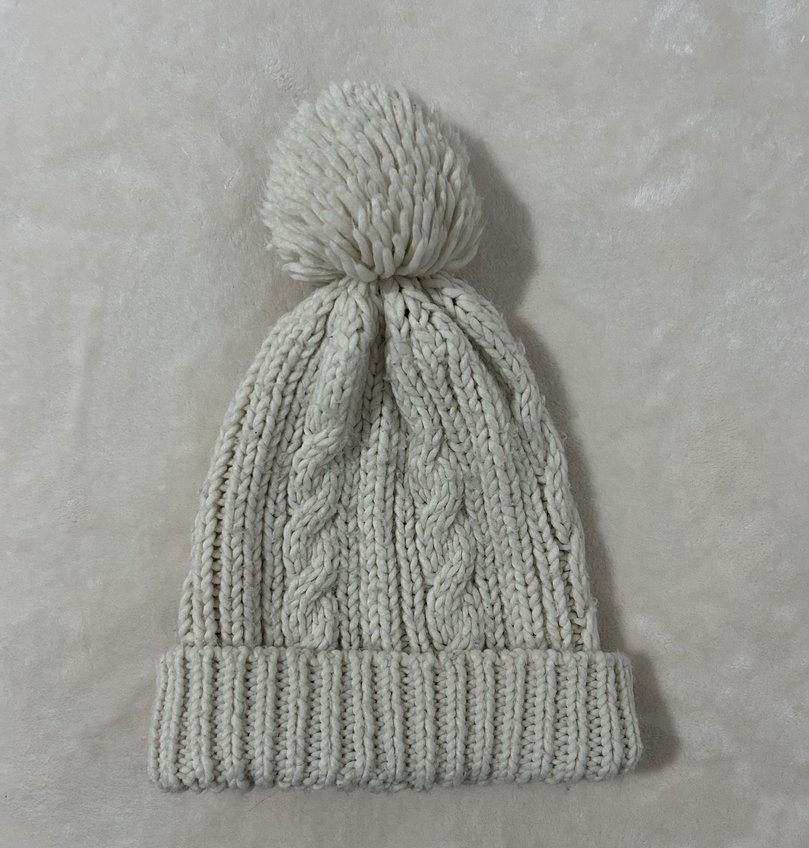 Yumuşak dokulu beyaz örgü kadın bere, büyük ponponlu ve rahat bohem tarzında tasarlanmıştır. ❄️
