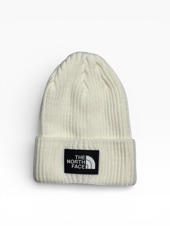 The North Face markalı beyaz örgü kadın bere, yumuşak fleece kumaş ve sokak stili sunar, trend günlük görünüme uygundur. ❄️