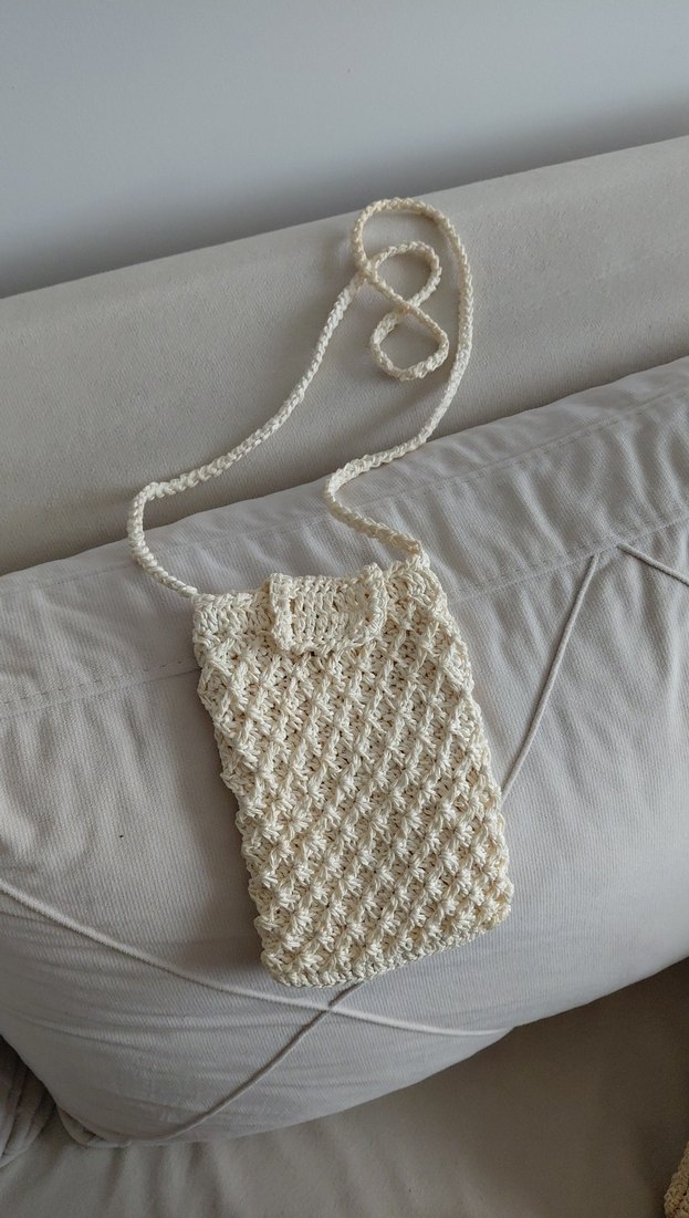 Beyaz Örgü Kadın Çapraz telefon çantası