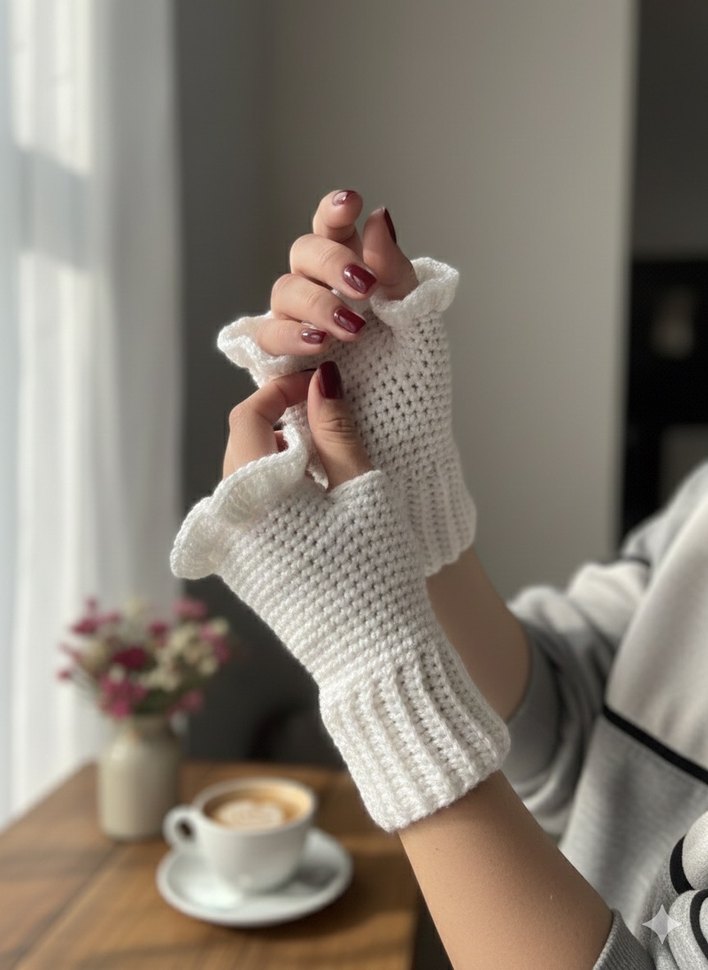 Beyaz örgü kadın eldivenleri, yumuşak ve rahat bir dokunuş sunar. Düz, sade normcore tarzıyla sıcaklık sağlar.
