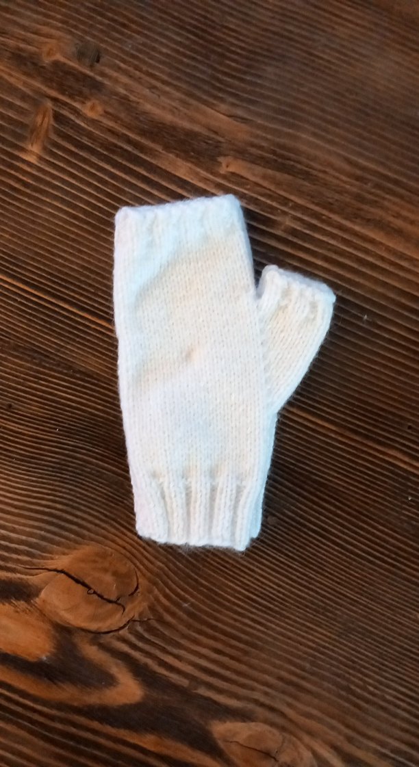 Yumuşak örgü kumaştan yapılmış, rahat ve sade bohem tarzda beyaz kadın eldiveni.