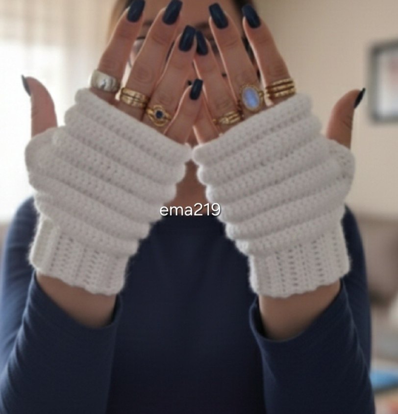 GÖRSEL BANA AİTTİR ✔️ İLAN AÇIYORUM ✨️ Beyaz renkli, örgü dokulu kadın eldivenleri, bohem tarzıyla şık ve rahat bir görünüm sunar. ✨