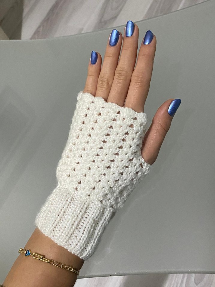 Beyaz Örgü Kadın Eldiven