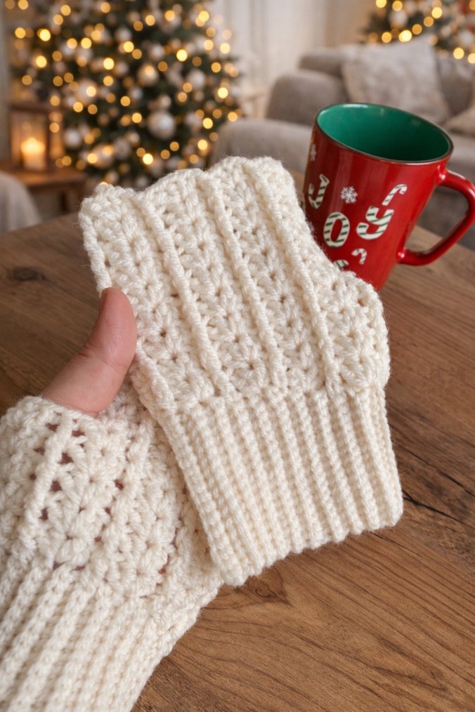 Yumuşak örgü kumaştan yapılmış beyaz eldivenler, rahat ve bohem tarzda, ellerinizi sıcak tutar. ❄️
