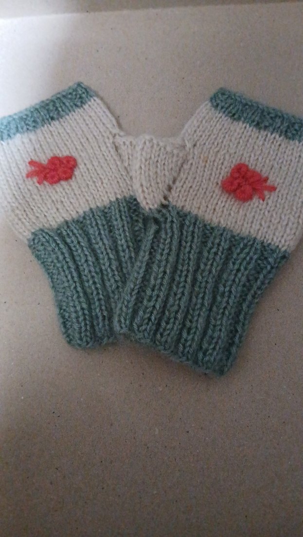 Beyaz ve açık yeşil renklerde, kırmızı detaylı örgü kadın eldivenleri. Rahat ve sıcak tutan, özgün bir tarza sahip.