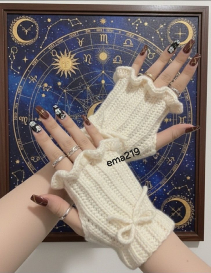 GÖRSEL BANA AİTTİR ✔️ İLAN AÇIYORUM ✨️ Beyaz örgü kadın eldivenleri, fırfırlı ve fiyonk detaylı rahat bir tasarıma sahiptir. Bohem ve retro tarzı yansıtır.