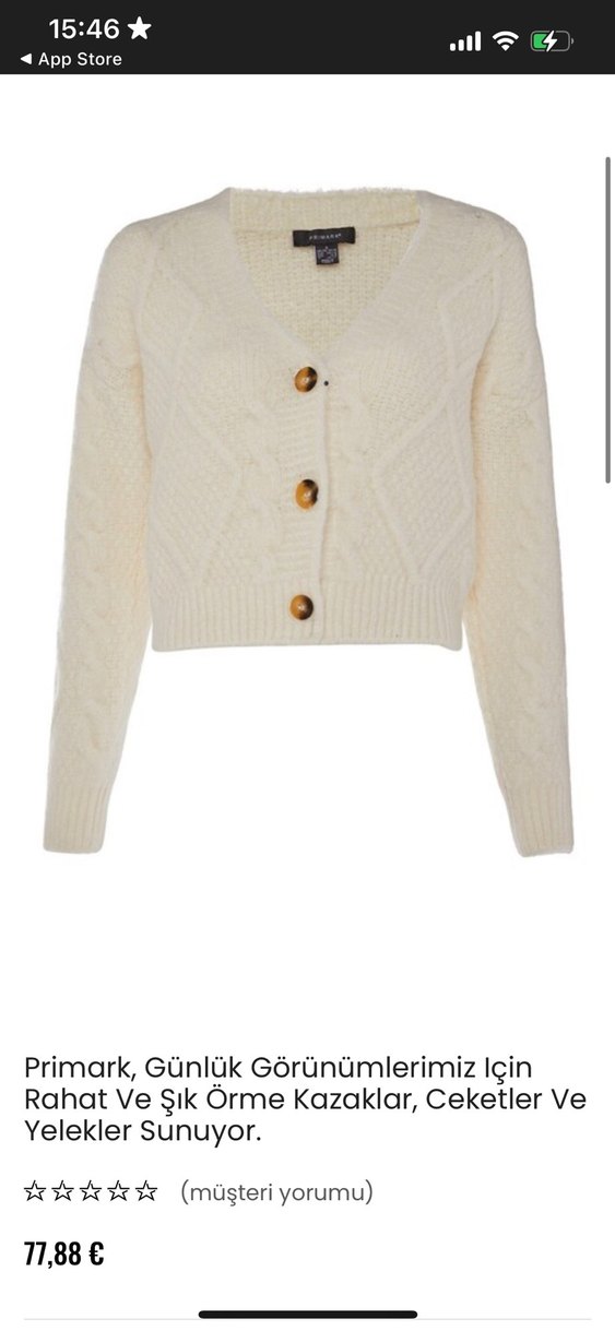 Beyaz örgü yün kadın hırka, uzun kollu, bisiklet yaka ve bol kesimdir. Midi uzunlukta, bohem tarzda ve düğmeli, günlük kullanıma uygundur. Arkasında çok belli olmayan bir deformesi var 1 kez giyildi Bedeni: M-L uyumludur