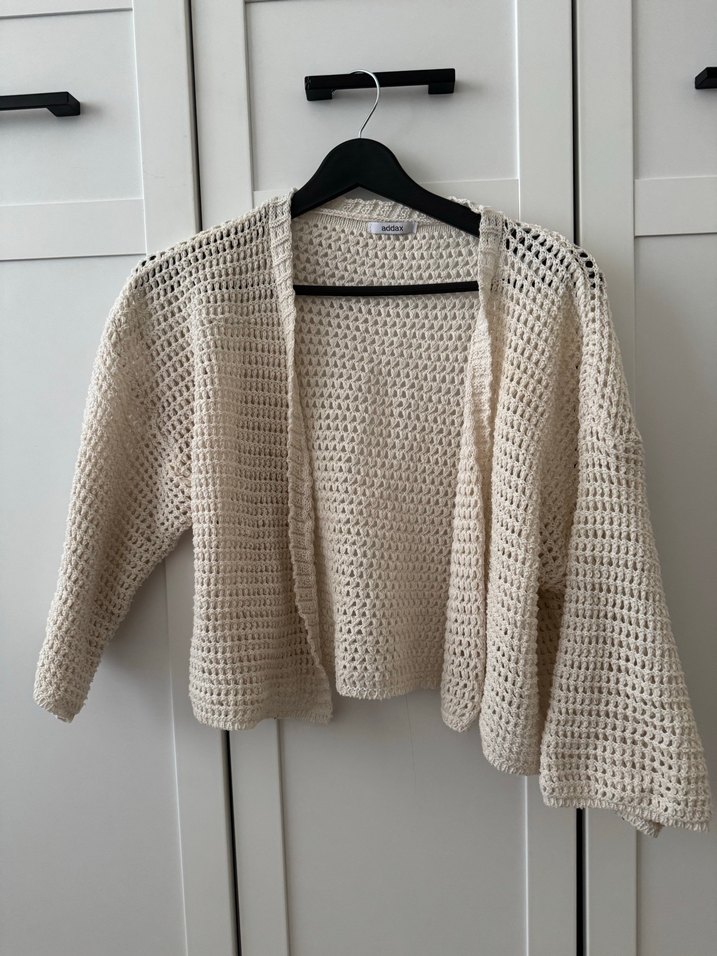 Beyaz örgü kadın hırka, uzun kollu ve salaş kesimdir. Midi boyda, bohem tarzda ve günlük kullanıma uygundur. Unpatterned ve rahat bir yapıya sahiptir.