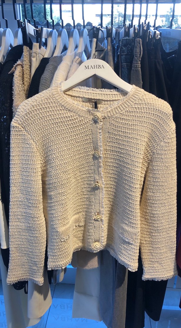 Beyaz örme kumaştan, uzun kollu ve bisiklet yaka kesime sahip, vücuda oturan midi boy hırka. Günlük kullanıma uygun, rahat ve sade tarzda.42 beden mevcut