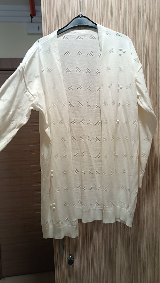 Beyaz Örgü Kadın Hırka Midi Boy