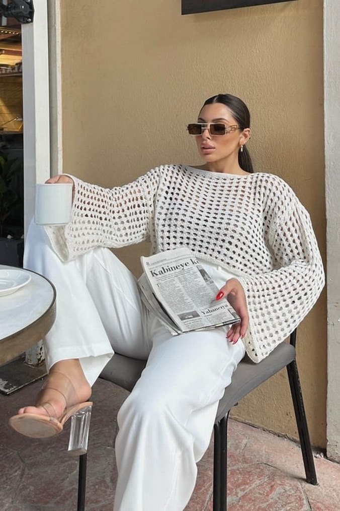 Beyaz Örgü Kadın Kazak