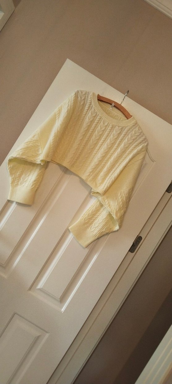 Beyaz Örgü Kadın Kazak ( boyu 38cm