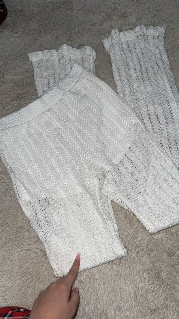 Beyaz Örgü Kadın Pantolon