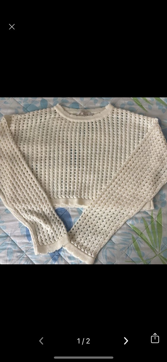 Beyaz renkli, örgü kumaştan yapılmış, uzun kollu ve yuvarlak yaka rahat kesim kadın kazak. Günlük kullanıma uygun, sade ve konforlu bir tasarım.