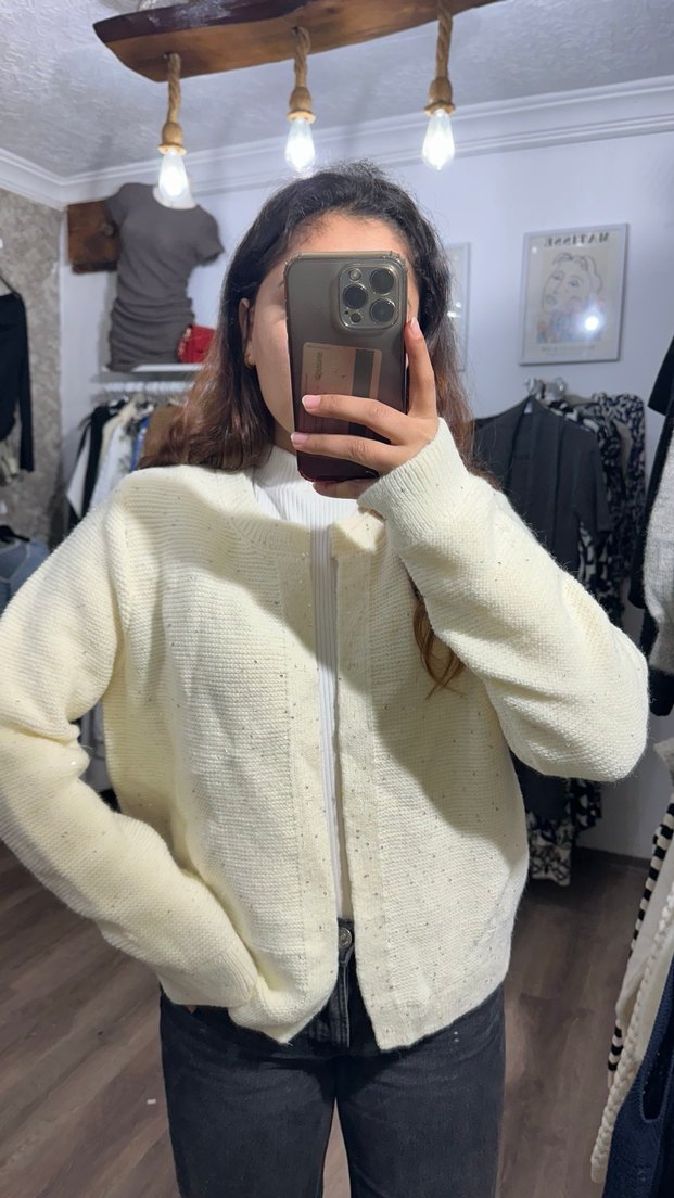 Yumuşak yünden, bol kesim, uzun kollu beyaz kazak. Örgü dokusu ve yuvarlak yaka ile günlük rahat kullanıma uygun normal boyda.