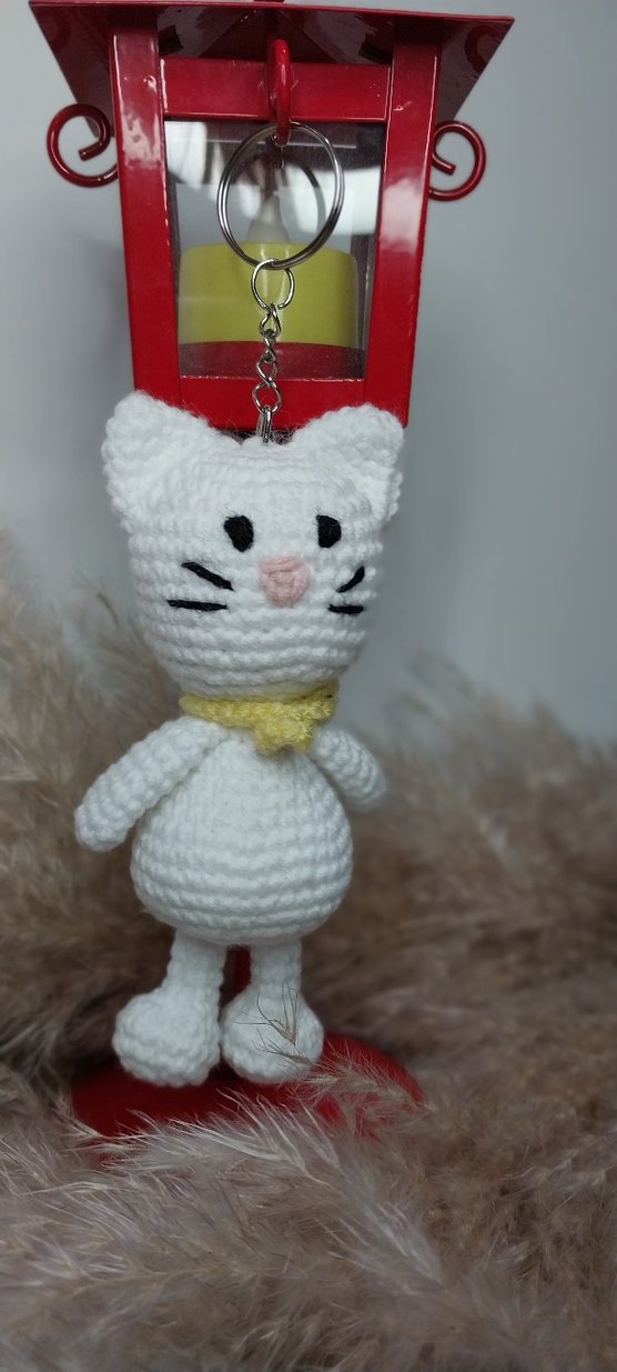 Beyaz Örgü Kedi Anahtarlık