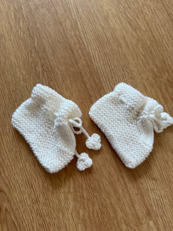 Beyaz Örgü Kız Bebek Patik 0-3ay