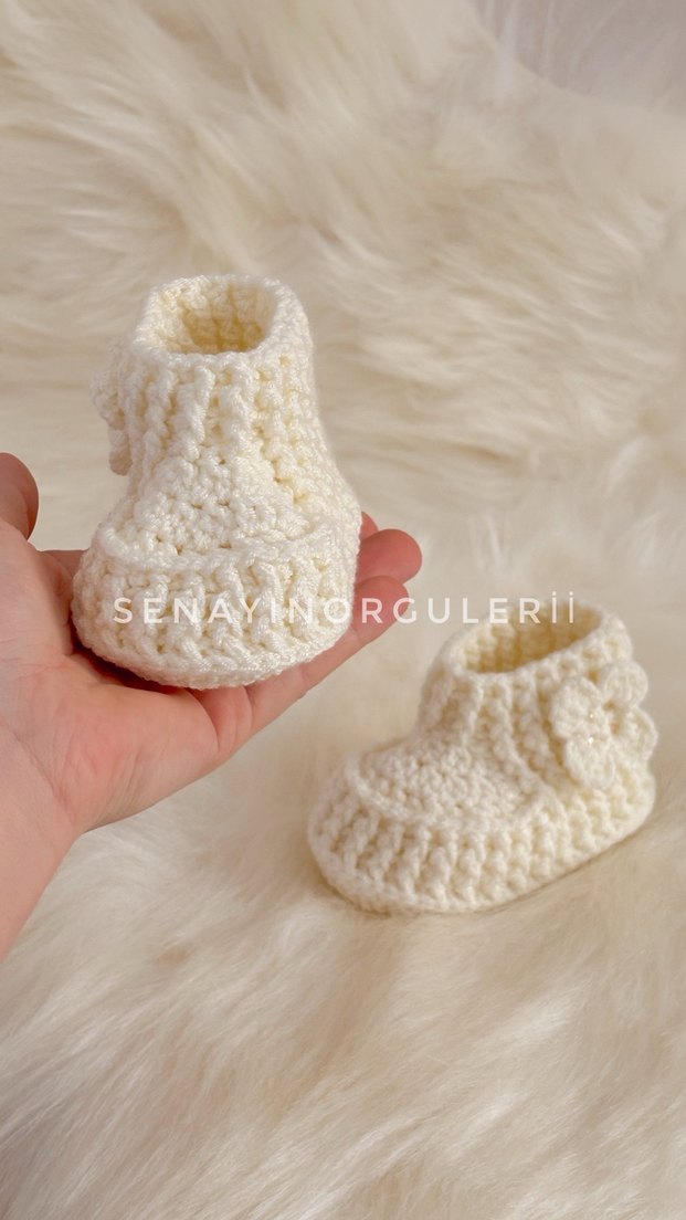 Yumuşak örgü beyaz kız bebek patikleri, sade ve desensiz tasarıma sahiptir. Klasik ve temel bir stildir.