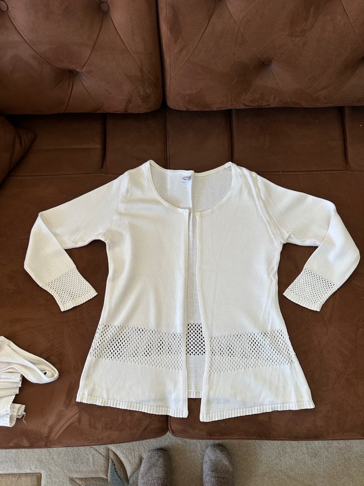 Beyaz Örgü Kolsuz Kadın Yelek Takım