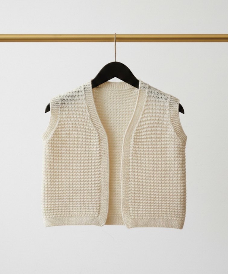 Beyaz Örgü Kolsuz kız çocuk Yelek