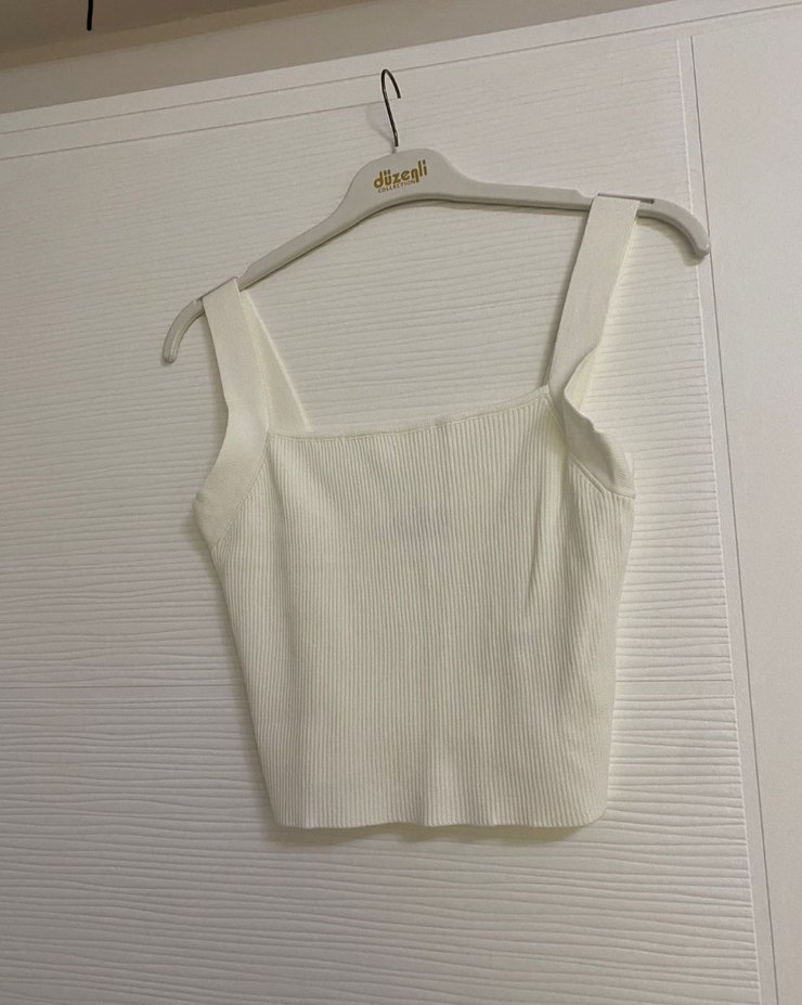 Beyaz Örgü Kolsuz Mini Kadın Atlet dilvin